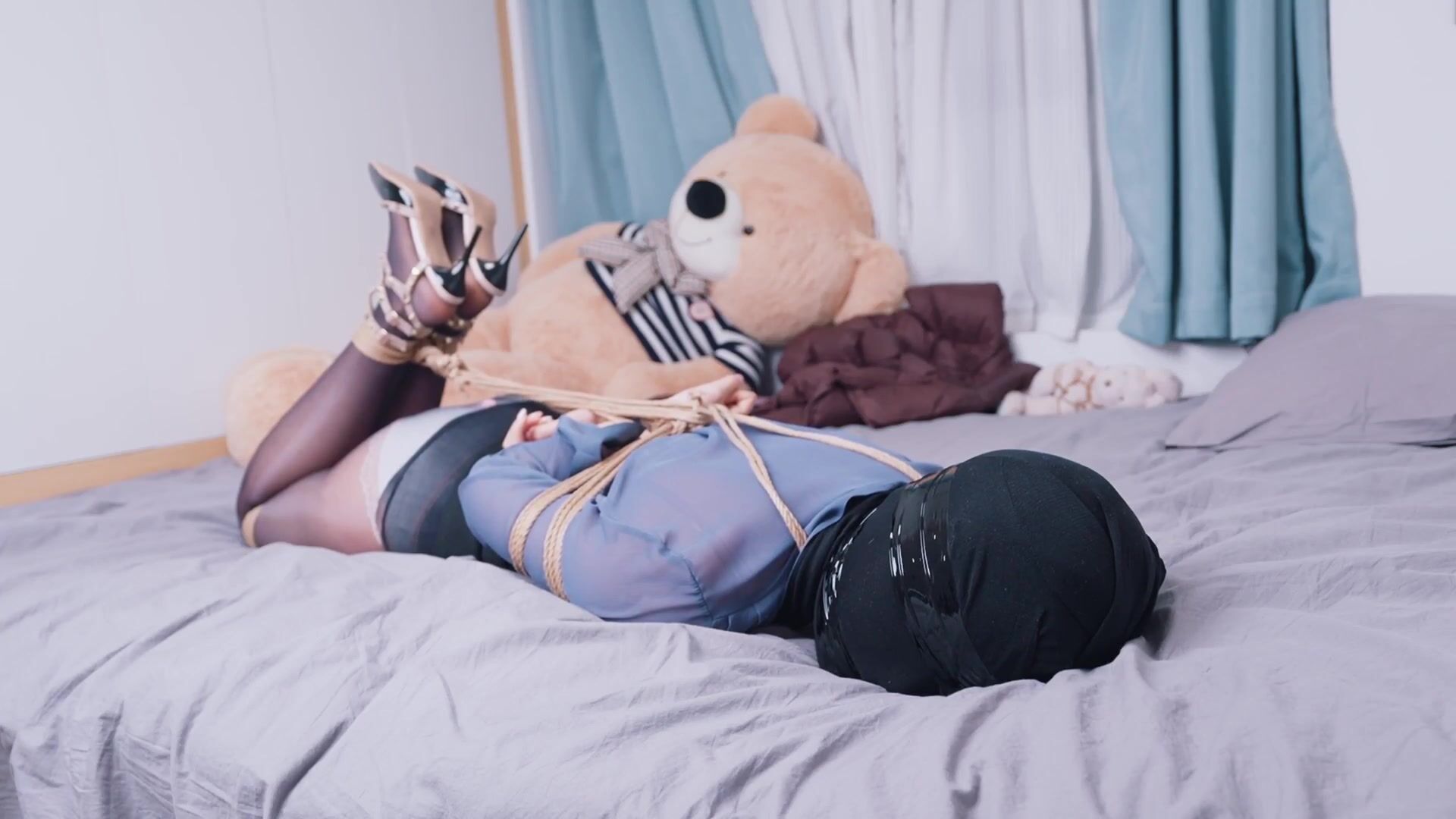 【悠米】《OL的游戏5》超长时间放置呼吸限制游戏+丝袜头套全包+胶带二次缠绕+遥控强制羔潮,只能听到部分呻吟声